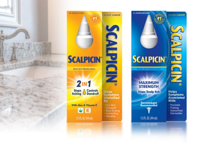 Objective: Differentiate the 2 Scalpicin skus by leveraging the Anti Itch and Dandruff Fighting message. Optimize branding impact on shelf.